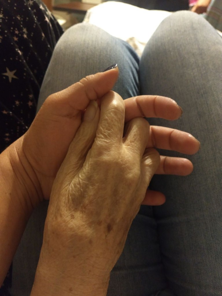 She was so tactile. She loved to touch things and people. I guess today you would probably say her love language was physical touch. She had no such vocabulary. She would just say something cute like, “I love flesh.” If she was passing you, her hand would rest on your arm, just briefly enough so you would know that she was aware of your presence. She would pat your cheeks if she was pleased with you. With her kids and grandkids, she would run her hands over our bare skin if we were running around after swimming or the boys without a shirt.