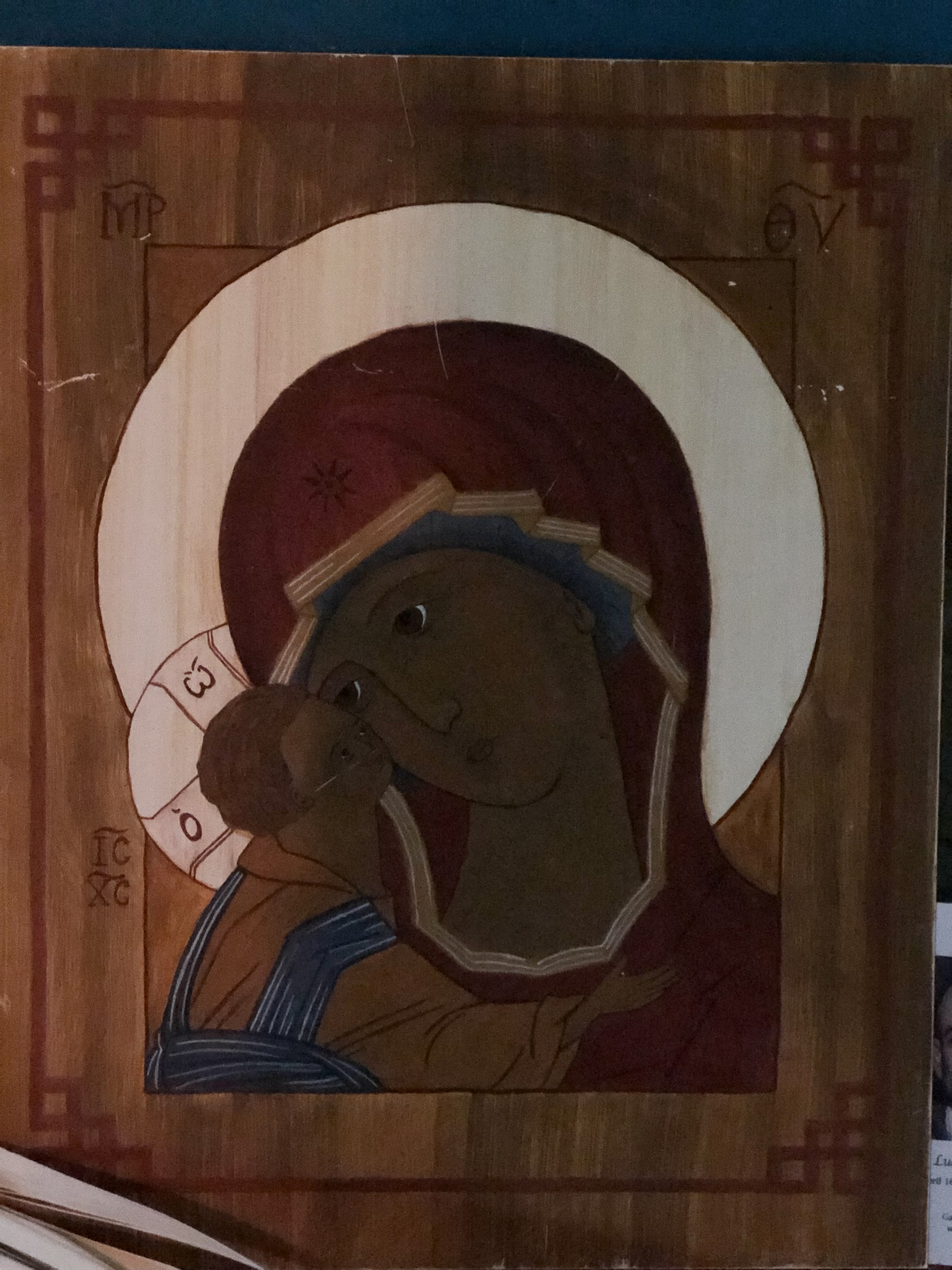 My pastor recently shared this word with me: Eleusa. As he explained some aspects of icons, he said said that Eleusa is the type of iconography in which Jesus is nestling against Mary’s cheek. It speaks to the endless love and tenderness depicted. It shows (at least) two things: Christ’s great love and mercy for humanity and Mary’s tenderness and devotion to her Divine Son.